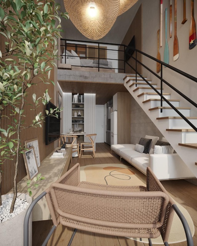 Tem apartamentos que variam de 21m² a 49m² de área privativa;